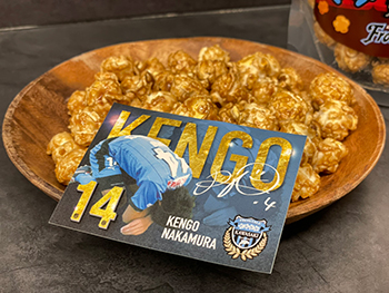 映画館に欠かせないアイテムと言えば『ポップコーン』。ということで中村憲剛FROの映画公開が発表されたことを記念して発売が決定!優しい甘さが特徴的な定番のキャラメル味は食べる手が止まらない絶妙な味わい。友達、家族でシェアして楽しみましょう。さらにポップコーンだけでなく、オリジナルシール付き。全12種類からランダムで付いてきます!