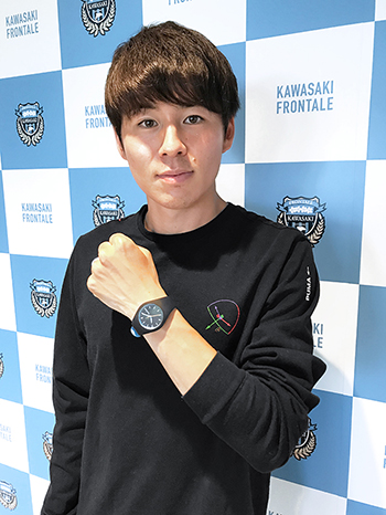 ファッションウォッチブランド『ICE-WATCH(アイスウォッチ)』とコラボした腕時計。フロンターレカラーのブラックとサックスをイメージしたカラーリングに加え、秒針にゴールドを採用。サポーター番号である‟12”のアワーマークのみサックスを使用した特製モデル。裏蓋はマスコットが刻印されたとても可愛らしいデザインになっています。また、パッケージBOXは腕時計を飾れるだけでなく、貯金箱としても使用可能。