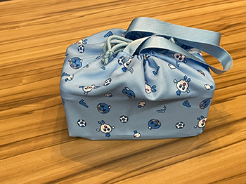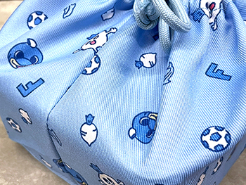 食欲の秋、ちょっと外へ出てお弁当食べようかな!という時にはフロンターレデザインのランチ巾着でさらにランチタイムを楽しみませんか!?底面に見えるギュッと収納されたふろん太がポイントです。