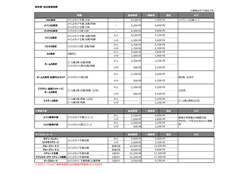 | 価格 | 会員前売価格 ※試合当日は当日券価格となります。 |