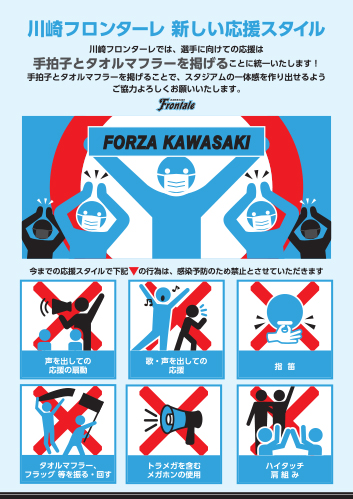 川崎フロンターレでは、新型コロナウイルス感染拡大防止を徹底し『安全・安心・快適』なスタジアムを目指し引き続き、尽力いたします。皆様のご理解とご協力をお願い申し上げます。