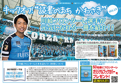 フロンターレの選手が選んだ推薦図書を掲載したリーフレット「キックオフ!“読書のまちかわさき”Vol.13」を市立図書館全館、市内小中学校などで配布・設置します。 |