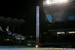 川崎市消防音楽隊・カラーガード隊「レッド・ウイングス」による、坂本九ソングでフロンターレロード~7番ゲートまでパレードを実施。 ※周囲の方との距離を保ち、安全な観覧にご協力ください。 |