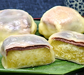 | 内容 | 地元川崎・新丸子の和菓子店「菓心 桔梗屋」の店主・須田義孝さんが坂本九さん生誕80周年記念饅頭を製作。題して「坂本九ちゃん 九里饅頭」。饅頭の餡には坂本九さんが好きだったという栗を練りこみ、甘さも控えめでしっとりまろやかな饅頭を完成させました。坂本九さんの奥様、柏木由紀子さんにもご試食いただき「おいしい!」の評価をいただいております!