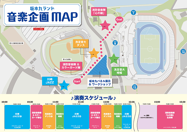 | 内容 | 今シーズンより新たにスタートした、キックオフ2時間前と1時間前をお知らせする「時報演奏」。今回は坂本九ランドということで「坂本九ソング」のスペシャルバージョンで実施いたします!!皆さん、ぜひぜひ素敵な演奏で時間を把握しちゃってください!!