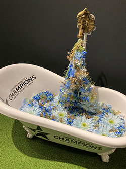 FROCAFE/AZZURRO NEROの入り口に置いてある2021優勝記念ロゴ入りバスタブが、