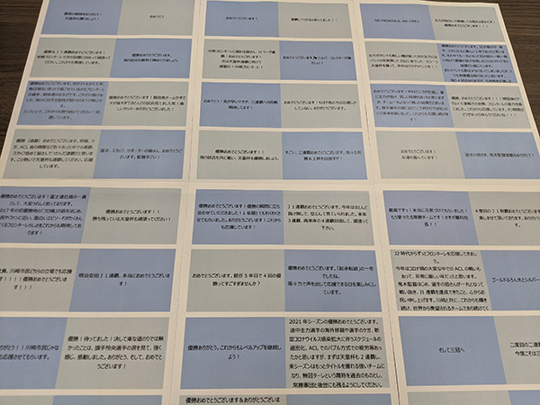 当日、『ロッカールーム~選手入場口付近』の選手に見える位置に掲示します。