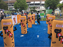 ロッテ・トッポくんを使ったドリブルアトラクションとキックターゲットを実施します。アトラクション参加者全員、フロンターレグッズが当たる抽選会にも参加が出来ます。