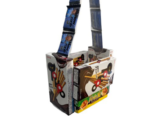 ロッテさんのお菓子を使ったバッグ作りを実施します。