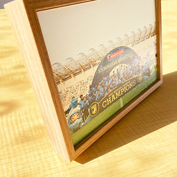 平面性の維持に優れ、長期間の展示でも"そり"や"曲り”が少ない「ゲーターフォーム」という材質を使用しています。高平面性、耐衝撃性、耐久性、耐擦過性にすべてを兼ね備えたまさに記録として保管しておくのにおすすめの商品です。