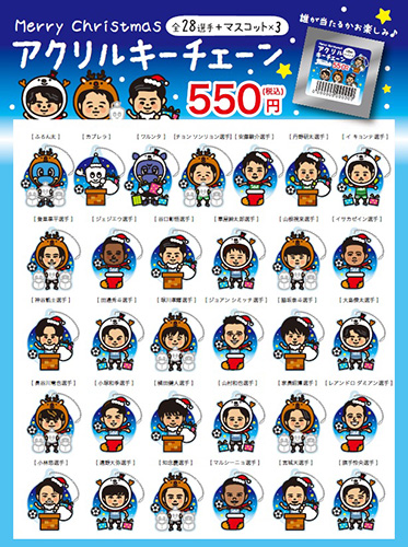 先日のハロウィンver.の全選手キーチェーンが好評だった為、続編となるクリスマスver.を発売!