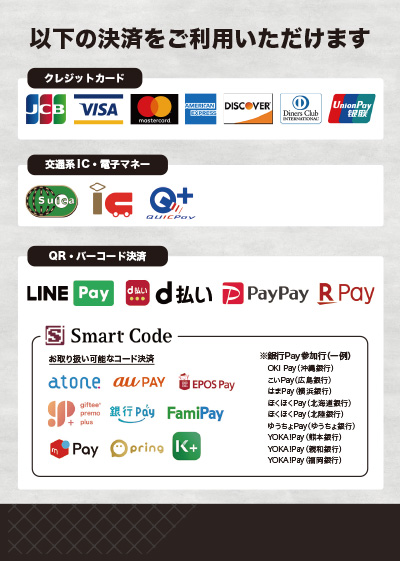 お支払方法(アズーロ・ネロ&スタジアム売店)