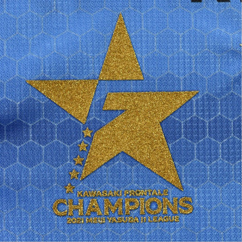 今年は2021シーズン終了時の在籍選手、監督、マスコット、そしてサポーターの名前をプリント加工した定番モデルに加えて、胸元に金色で優勝記念ロゴがデザインされたネーム・ナンバーユニフォームも販売。