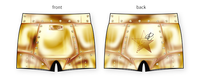 今回もノボリ考案のもと「素敵なパンツが出来上がりました!!」と優勝後、スタッフに連絡が入り、どんなデザインかスタッフも楽しみにしていましたが、まさかの「黄金」風のデザインに!!
