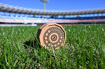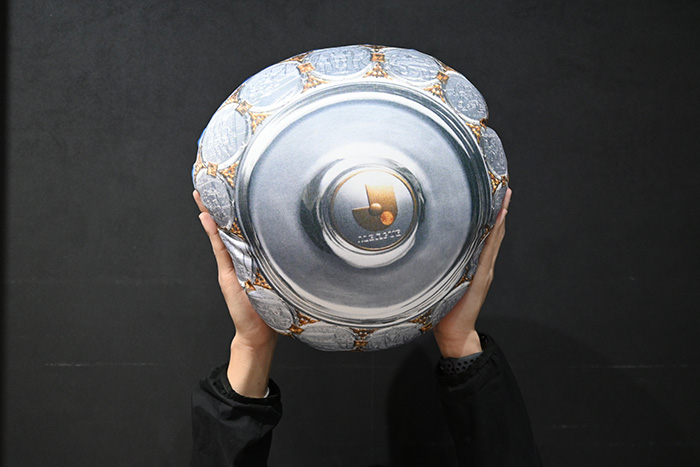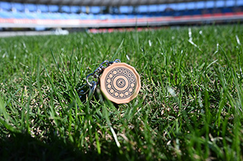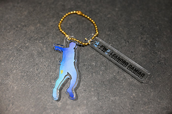 優勝記念ロゴをさりげなくシルエットに入れたキーホルダーは主張しすぎずちょうど良い仕上がりに。