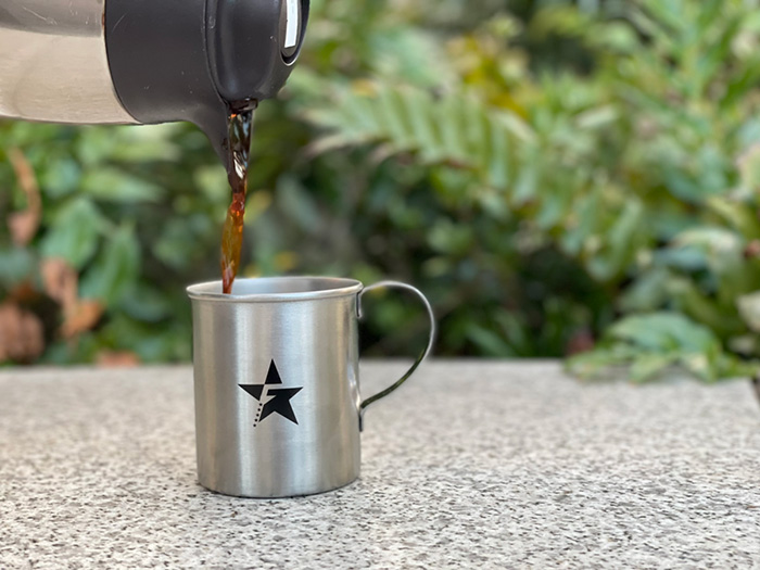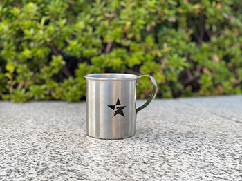 近頃のキャンプブームと共に人気が上昇した軽量で持ち運びが簡単なステンレスマグカップ。『カーン!』という心地よい音が特徴的です。