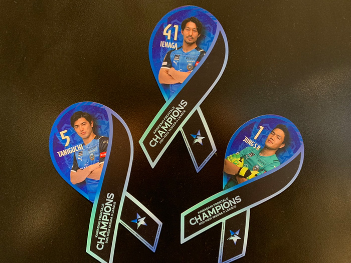 ペタッと貼ればさりげなくフロンターレサポーターとアピールできるリボンマグネットを全選手対応で販売。