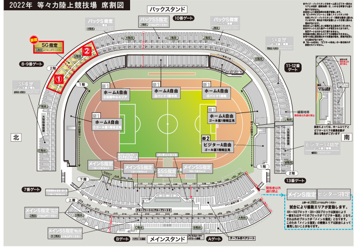 2022シーズンよりバックS自由とSG自由は指定席へと変更させていただきます。