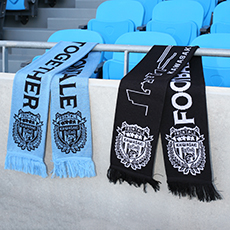 冬の観戦に大活躍のニットマフラーに新デザインが登場。フロンターレの応援グッズの定番と言えばタオルマフラー...。なんですが! ニットマフラーも定番化!? スタジアムを青く染めるフロンターレブルーデザインか、川崎名物がシルエットで描かれたクールなブラックデザインの2カラー展開。