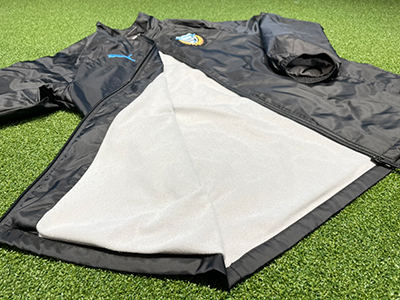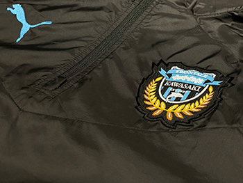 冷たい風の侵入を防ぐ高機能防風素材のウェア。冷たい風が吹くことが多い等々力陸上競技場での試合観戦にオススメのウェアです。