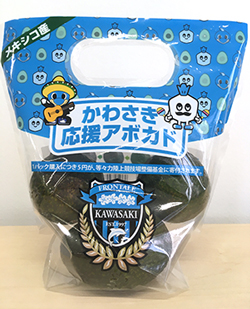 川崎フロンターレのクラブパートナーである「株式会社ドール」協力のもと、地元川崎の青果卸会社である東一川崎中央青果が、バナナ・アボカドの販売を通してクラブ支援と川崎市の活性化を考え、川崎市内を中心とした量販店にて展開中の「かわさき応援バナナ」と「かわさき応援アボカド」。