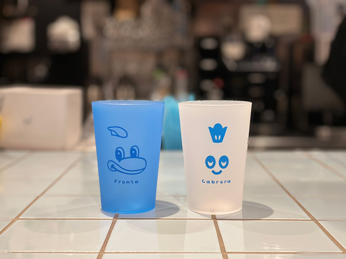 フロスト加工を施したマットな質感と柔らかな色合いが特徴的なコップです。ふろん太とカブレラの表情を大きくデザインした2個セットです!