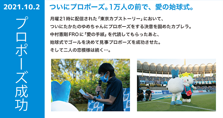 それが縁となり、「カブレラ」と「たかたのゆめちゃん」が2021年8月1日(日)にマスコット史上初の「交際宣言」をし、10月2日(土)にカブレラがプロポーズ。そして11月27日(土)、遂にゴールインパーティ実施の発表をいたしました。