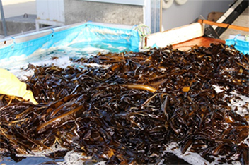陸前高田の昆布を使って制作した「コンブーケ」を、たかたのゆめちゃんが投げます。
