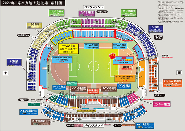 ※「ホームA指定ゴール裏1階北(立見)」、「ビジターA指定ゴール裏1階南(立見)」、「【企画】ホームA指定 椅子あり」の配席については、感染対策として、原則「左右1席空き」で運用いたします。