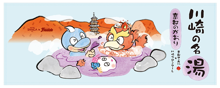 今年は川崎フロンターレ26(フロ)周年。ということで恒例になりつつある、マスコット混浴シリーズ。今回は京都サンガF.C.のマスコットである“パーサくん”に混浴していただきました!! 数量限定なのでご購入はお早めに。