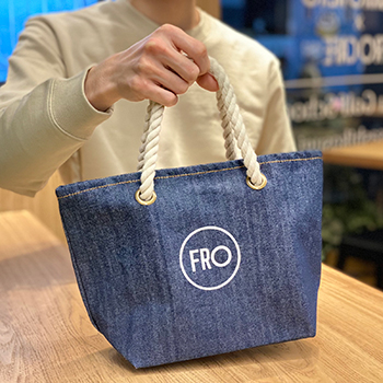インディゴの落ち着いた色味がFROロゴをより引き立てます。