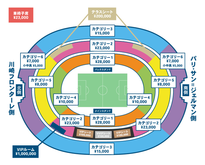 | 車椅子席 | 23,000円 | カテゴリー1の後方のエリアになります |