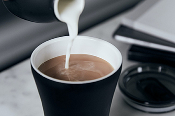 なめらかな曲線を描いて広がる飲み口は少ない傾きで中身が口に流れるので飲みやすく、使い終わった後も洗いやすい設計。