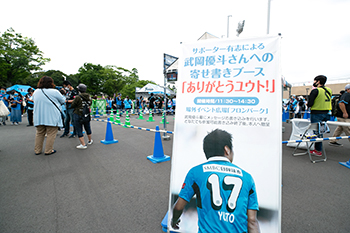昨シーズンで現役を引退した大久保嘉人さんからサポーターへ向けた挨拶(キックオフ前スタジアム内)を行うほか、試合前にはフロンパークで本人とのフロンターレラストグッズ争奪じゃんけんコーナー、メッセージ書き込みコーナーなどを設置いたします。