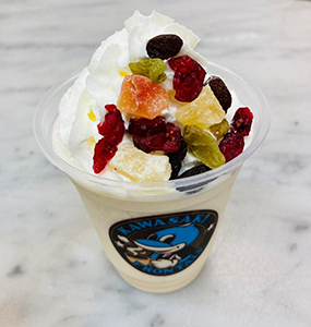 ティー(紅茶)のフロンチーノに、ドライフルーツが好きという山根選手をイメージした、ドライフルーツをゴロゴロ乗せました!