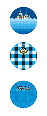 | 内容 | ふろん太とカブレラが描かれた26周年タペストリーデザインがプリントされたボトルに、自由にお絵かきをして完成! ※一度描いた絵を消すことはできません。ご了承ください |