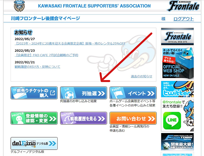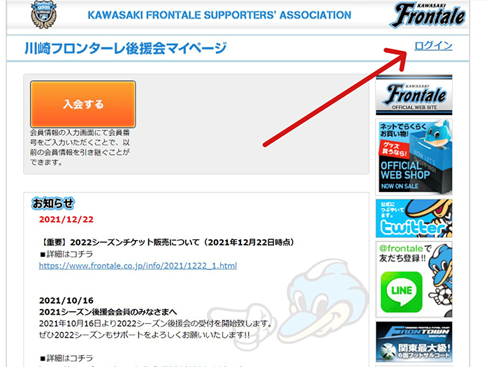 1.後援会マイページへログイン。