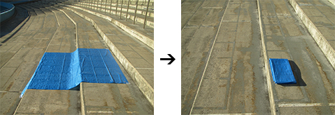 ◇テープ、ひも等での座席の確保 → 撤去いたします。