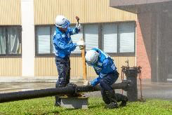 | 内容 | 勢いよく吹き出す水しぶきをものともせず、水道管からの漏水をぴたりと止めます。川崎市上下水道局が誇る技能集団「スペシャリスト」たちによる、迫力ある漏水修理の技をとくとご覧あれ!