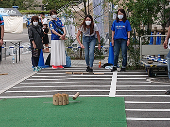 | 実施内容 | ・特設ビーチの上からネットの先のターゲット(ボールかご)にボールを入れる ・1人3回チャレンジOK(ターゲットに入った時点で終了) 成功者には景品があるかも...!! |