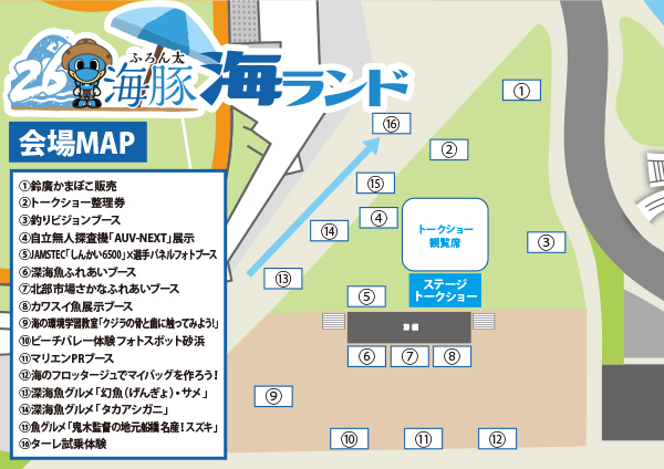 川崎市上下水道局presents「かわさき水まつりランド」、フィンランド大使館商務部協力「FINLANDランド」、そして初登場!JAMSTECを筆頭に海をテーマに構成される「ふろん太海ランド」。