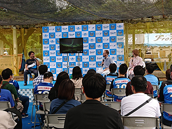 | 観覧方法 | 観覧無料(最大70席) ※座席エリアの整理券を12:00からフロンパークステージ付近で配布します。 ※参加券はお一人様1枚までとなります。 ※整理券をお持ちの方はトークショー開始10分前まで、にフロンパークステージ付近に再度お集まりください。 ※座席エリアが満席となった場合、エリア外からの立ち見での観覧となります。 |