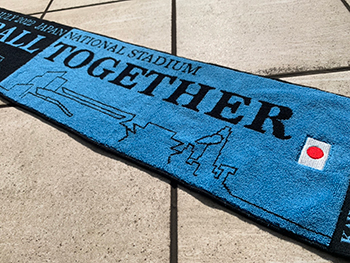 国立競技場を青く染めるタオルマフラーは応援グッズとして必須です。すべてのFOOTBALLに関わる皆さんと共に勝利を目指しましょう! 刺繍加工された国旗がデザインされたメモリアルデザインとなります。