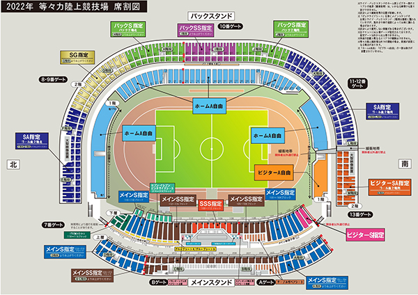 ビジターS指定、ビジターSA指定、ビジターA自由がビジターサポーターのエリアとなります。