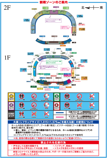 ※大旗(Lサイズフラッグ[1,015×1,575mm]を超えるサイズ)の使用は、「ビジターA自由(立見)」に限り使用可能とします。