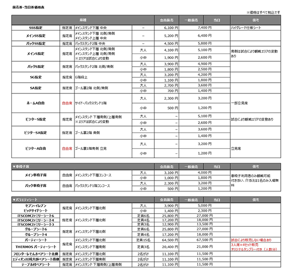 | 価格 | 会員前売価格 ※試合当日は後援会会員価格となります。 |