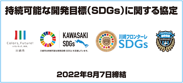 川崎フロンターレでは、川崎フロンターレSDGsを推進していくため、川崎市と持続可能な開発目標(SDGs)の達成に向け、相互に連携、協力することを目的とした協定書を締結いたしました。