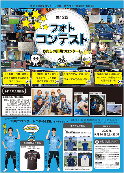このたび、川崎フロンターレ連携・魅力づくり事業実行委員会(紀中靖雄委員長)では、令和4年度事業として「わたしの川崎フロンターレ」フォトコンテストを開催いたします。