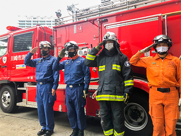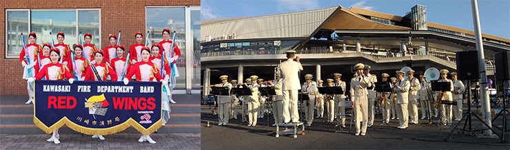 川崎市消防カラーガード隊「レッド・ウイングス」による演奏会。 ※周囲の方との距離を保ち、安全な観覧にご協力ください。 |