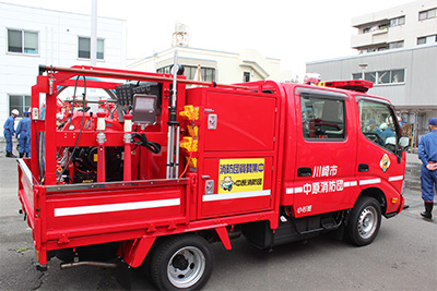 ポンプ車・小型動力ポンプ積載車(消防団車両) 13:00~17:00 ※災害時など緊急出動が必要な際には、展示できない車両があります。 |